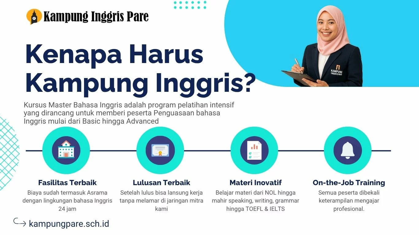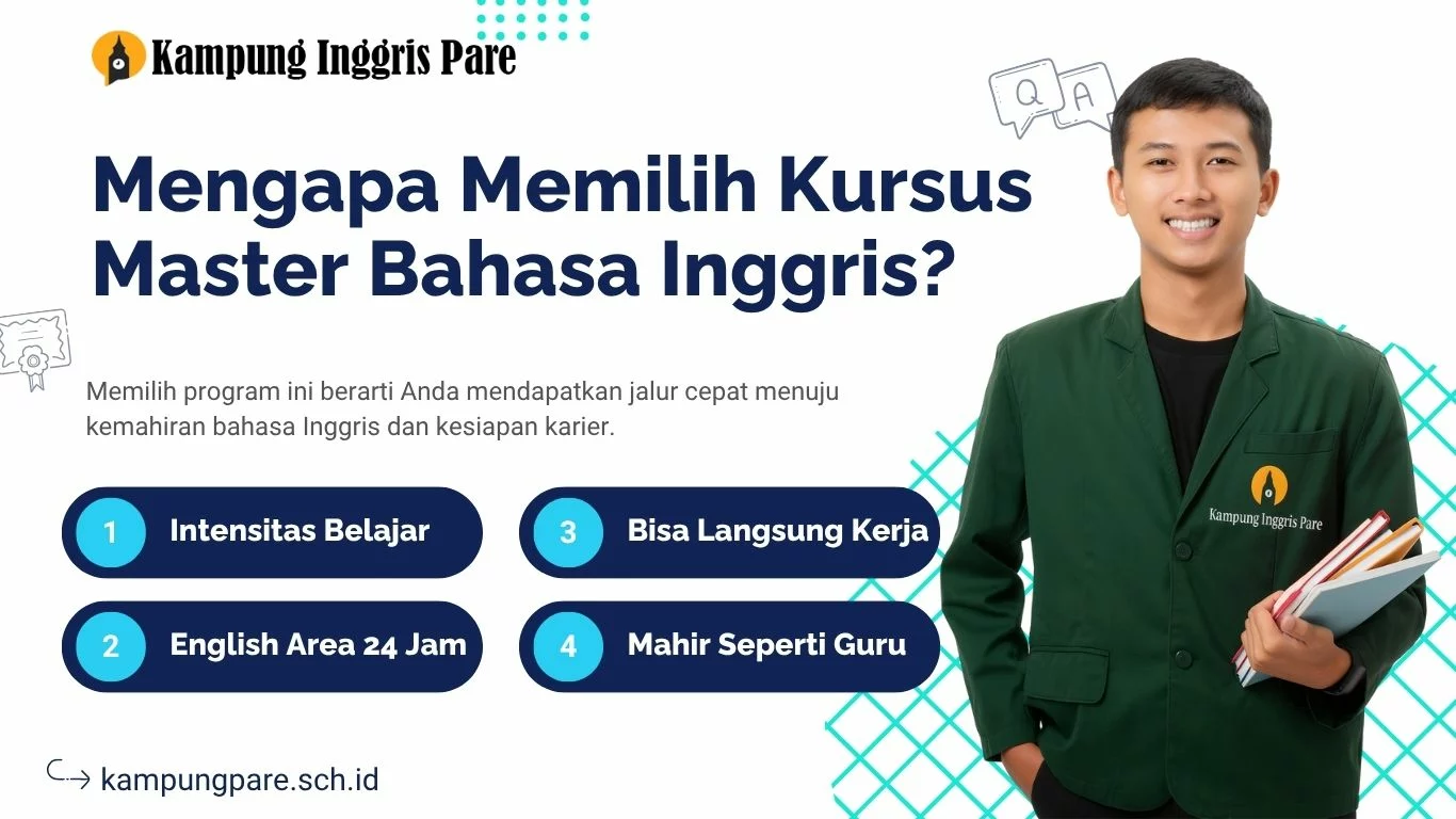 Kursus Master Bahasa Inggris 6 Bulan di Kampung Inggris Pare adalah investasi waktu dan biaya terbaik untuk mengubah kemampuan bahasa Inggris Anda menjadi aset karier yang bernilai tinggi.