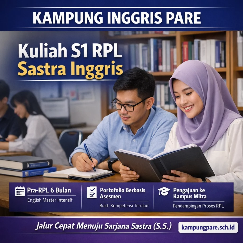 Kuliah S1 RPL Sastra Inggris adalah jalur pendidikan sarjana yang memungkinkan capaian belajar nonformal dan/atau pengalaman kerja dinilai oleh kampus menjadi pengakuan SKS melalui mekanisme RPL (Rekognisi Pembelajaran Lampau). Dengan RPL, sebagian mata kuliah yang kompetensinya sudah terbukti bisa diakui, sehingga sisa semester yang harus ditempuh berpotensi lebih sedikit.
